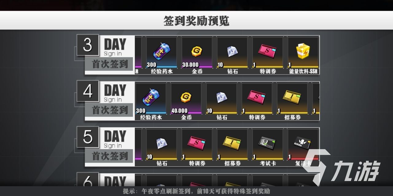 簽到在左側(cè)一覽的第二個活動中可以找到,玩家可以簽到十三天,在這其中可以領(lǐng)取到特訓(xùn)券,每天能夠獲得一張,但是從第三天開始持續(xù)到第十三天,玩家能夠獲得十三張?zhí)赜?xùn)券,前提是每天都要記得登錄游戲。