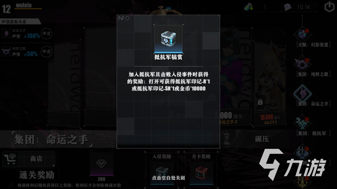 基礎(chǔ)的就是主角的天賦裝置,通過之后獲得升級(jí)裝置的道具。而其他的就是各個(gè)集團(tuán)副本了,集團(tuán)是有六個(gè)選擇的,這個(gè)和玩家選擇的實(shí)力加入是有一定影響的。如果說挑戰(zhàn)加入集團(tuán)的對(duì)應(yīng)副本,是可以獲得入侵特殊獎(jiǎng)勵(lì)的。