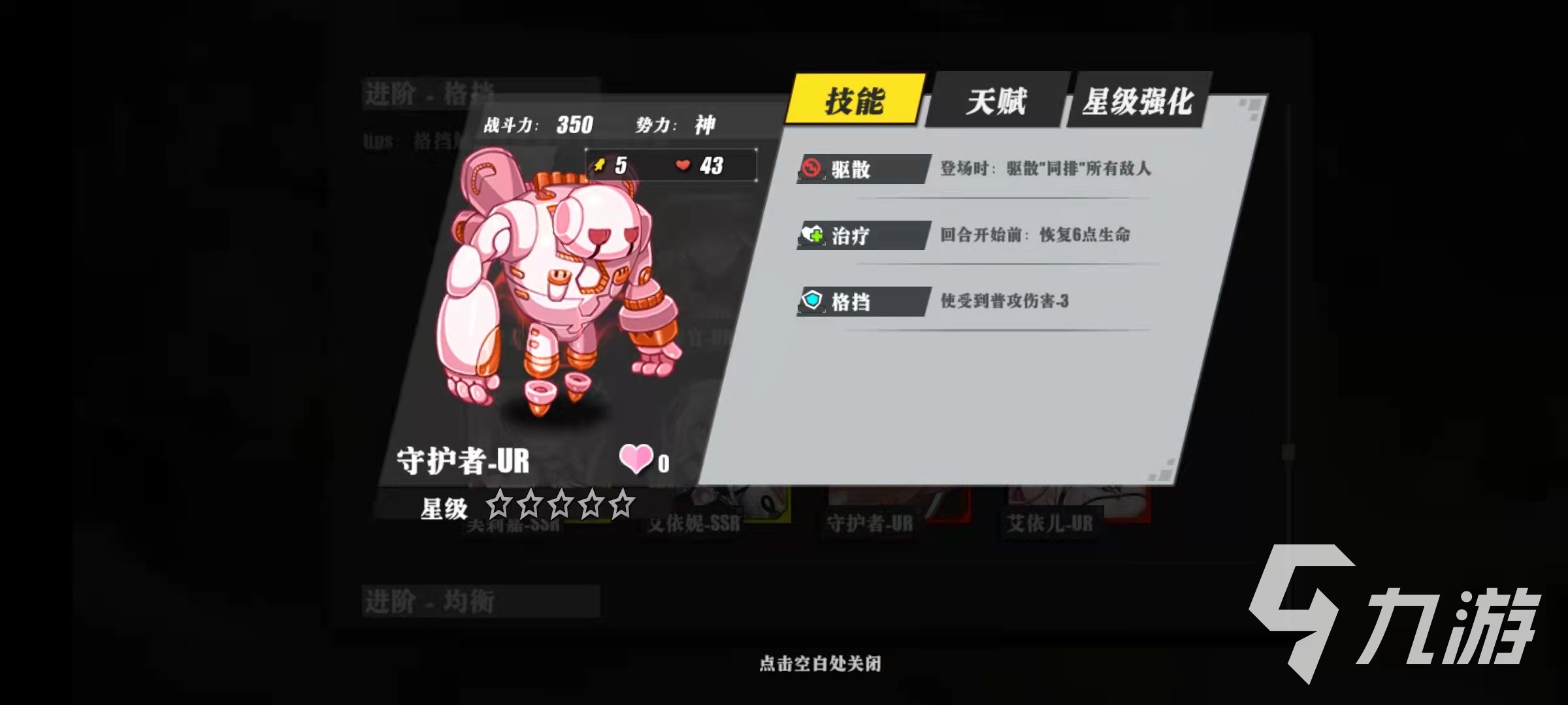 如果說芙莉嘉-SSR是觸發(fā)的治療,那么艾依妮-SSR就是陣容的輸出核心,只要有格擋觸發(fā)就可以在成一次傷害,沒有上限的限時,所以運氣好的時候艾依妮-SSR可以對敵方造成爆炸輸出。守護者-UR的技能是驅(qū)散,治療和格擋,效果就是加強版的守護者-SR,但是生存能力和格擋更加強悍了。