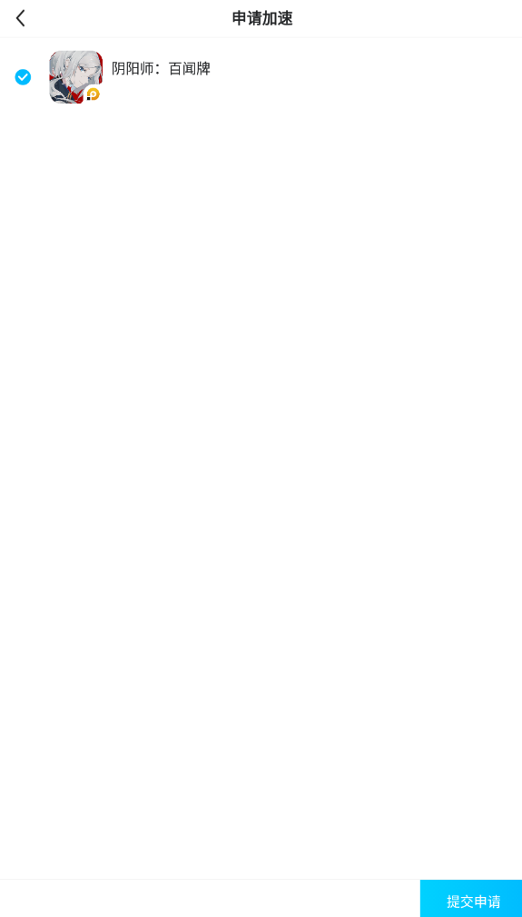玩家在點(diǎn)擊完申請(qǐng)加速本地游戲之后,就可以看到下圖所示的界面,在該界面中,玩家可以選擇自己想要申請(qǐng)的游戲,過(guò)段時(shí)間就可以加速這款游戲了。