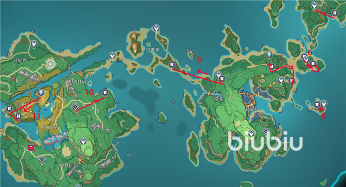 武器等級(jí)提升材料:武器等級(jí)提升一般需要魔礦石,可以通過野外寶箱獲得,武器突破材料可以通過野外寶箱、世界任務(wù)獲得。對(duì)于開寶箱,推薦大家直接去稻妻城尋找珍貴寶箱和華麗寶箱,下圖為稻妻城珍稀和華麗寶箱分布圖,玩家可以從最下面的鶴觀島開始往上一直去探索。