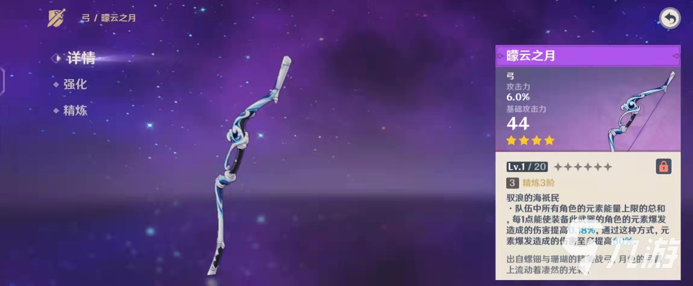 來源: 極光 作者: 繪梨衣的廢柴 2021年11月05日 23:48原神2.2版本下半卡池已經(jīng)更新,新出了2 把4星武器給護摩之杖陪跑,今天就給大家?guī)砥渲幸话言?.2新武器曚云之月適合誰用,曚云之月武器強度一覽。