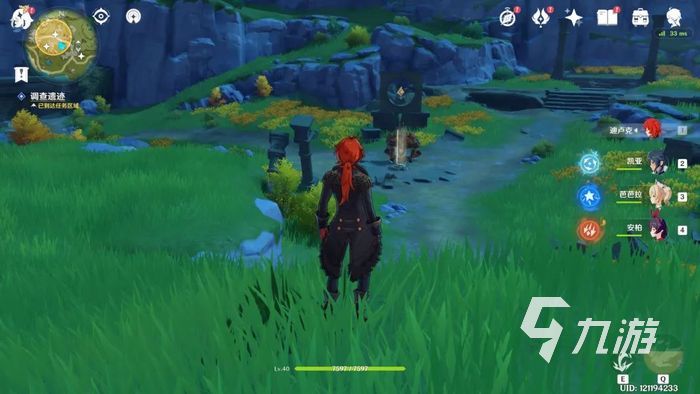 首先小伙伴們需要到上圖所示的位置,接取世界任務(wù)【古云有螭】,位置在輕策莊最下面那個傳送點,大家過去之后找到遺跡門口的胭兒就可以接取任務(wù)了。