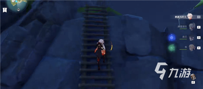 再往上爬,會(huì)看到愚人眾的對(duì)面是有一個(gè)梯子的,如果你有其他角色可以從剛才的地方直接上去,這樣一來就可以到達(dá)頂部拿到錯(cuò)位的海螺了。