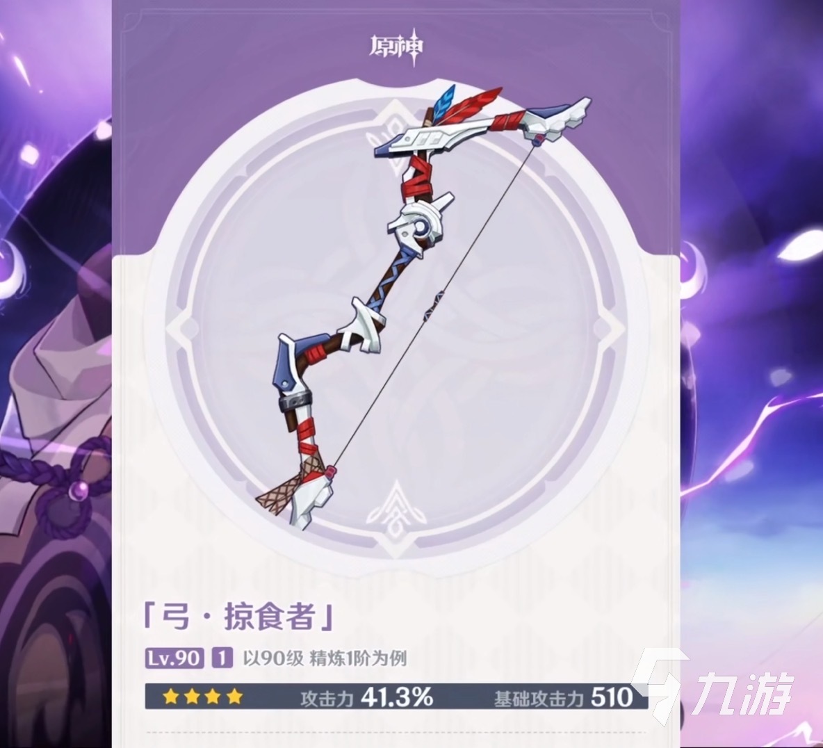 4星的弓,只有玩家通過(guò)特殊平臺(tái)登陸才能獲得。掠食者同樣能提升角色的雙攻,武器特性是角色造成冰傷時(shí)提升角色普攻和重?fù)舻膫?,至多提?0%。不過(guò)掠食者的武器特性局限性很大,很難觸發(fā)生效,并且攻擊力增幅鎖定埃洛伊。