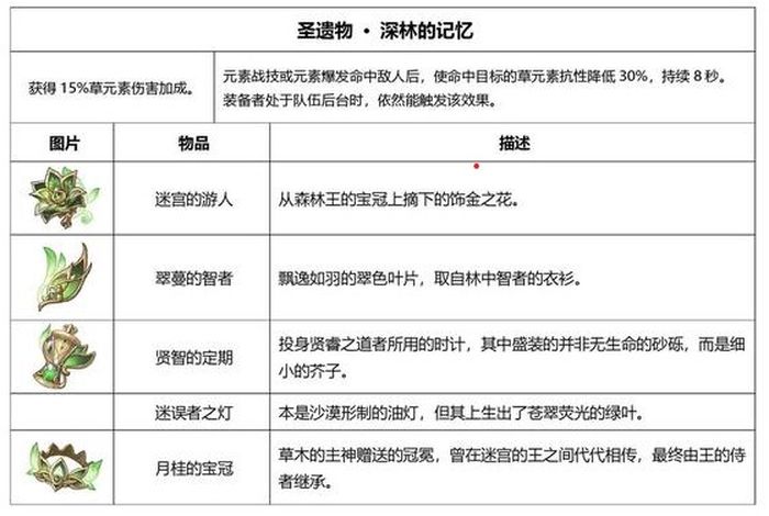 深林的記憶這個圣遺物分成2件套,和4件套。里面有迷宮的游人,翠蔓的智者,賢智的定期,迷誤者之燈和月桂的寶冠等。