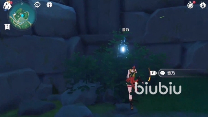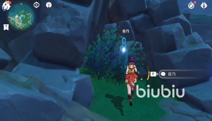 第二處的位置其實(shí)就在附近,從平臺(tái)爬上去之后往傳送錨點(diǎn)的東側(cè)走一點(diǎn)點(diǎn)就可以看到音乃了,不知道如何找位置的小伙伴也可以看看小編分享的圖片里,小地圖的位置,同樣是跟音乃進(jìn)行對(duì)話開(kāi)啟下一階段的捉迷藏游戲。