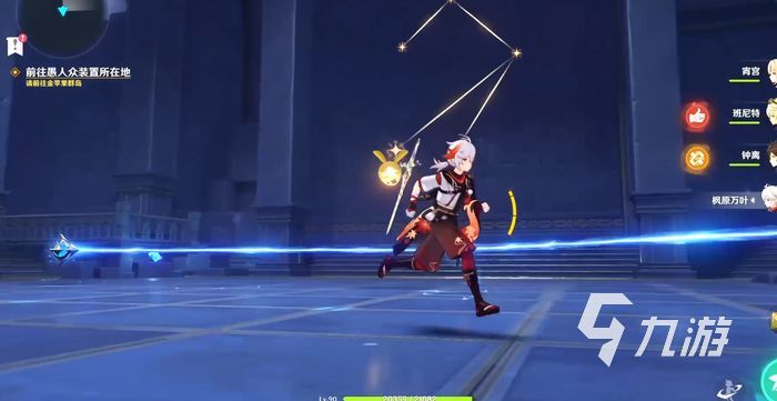首先我們進入到星緯殿堂之后向左走,大家可以看到下面有一個小門,然后一直走到最里面可以看到一個廣場,之前這里面就是我們破解謎題的地方,這個謎題破解方式也是非常簡單的,大家抬頭看天上會發(fā)現(xiàn)有類似星座的圖像,然后普攻下面的機關弄一個一模一樣的連線就可以了。