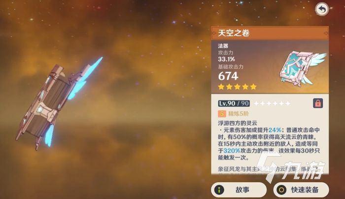 小鹿的戰(zhàn)技效果和特性大家應(yīng)該都熟記于心了,而想要讓他傷害提升就必須選擇高攻擊和高雙爆,那這里就講講適配他的兵器,首先排在第一的是天空之卷,他是五星級別的,一級攻擊為百分之七點二,基礎(chǔ)攻擊力為四十八,在升到滿級后攻擊為百分之三十三點一,基礎(chǔ)攻擊力為六百七十四,可以說這個兵器加的白值非常高,而對于小鹿這種靠攻擊和雙爆打傷害的角色來說,有很好的提升效果,最關(guān)鍵的還是他的被動,可以增加百分之十二的全額元素傷害,并且在命中對手后會有一半概率讓他得到特殊狀態(tài),這個狀態(tài)會令其受到當前攻擊力百分之一百六十的元素傷害,在裝備了他后你們基本上不用擔心小鹿會因為傷害不足而換人。