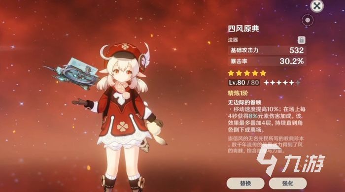 第三個是四風原典,一級暴率為百分之七點二,基礎(chǔ)攻擊力為四十六,在升到滿級后暴率為百分之三十三點一,基礎(chǔ)攻擊力為六百零八,效果為裝備后提升百分之十的移速,并且在出場是每四秒可以增加百分之八的全額元素傷害,最高可以到百分之三十二,很多小伙伴都會覺得這個武器要比前面兩個好,其實不然,首先四風需要站場時間,而且攻擊力提升的并不多,暴擊再高也需要爆傷和攻擊的加成才能將傷害體現(xiàn)出來,并且本身六命的小路是會增加暴擊和爆傷的,如果武器在選擇導致攻擊變低了,可以獲稀釋本來的傷害,因此排在第三位。