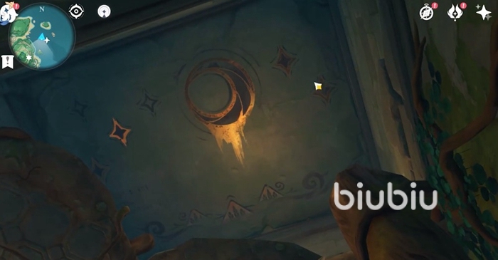 而大部分的玩家只找到了兩處壁畫,第三處壁畫怎么找都是找不到。其實這一處壁畫比較陰,藏在了天花板上,所以很多玩家沒有往上看所以看不到。這里小編也是直接將壁畫的圖片分享給大家,大家可以直接根據(jù)壁畫上的位置來點亮相應(yīng)的火炬。這個火炬是左四右二的排列,左邊只需要點亮中間的一個火炬、最左邊下面一個火炬,右邊兩個火炬全部點燃就可以了。