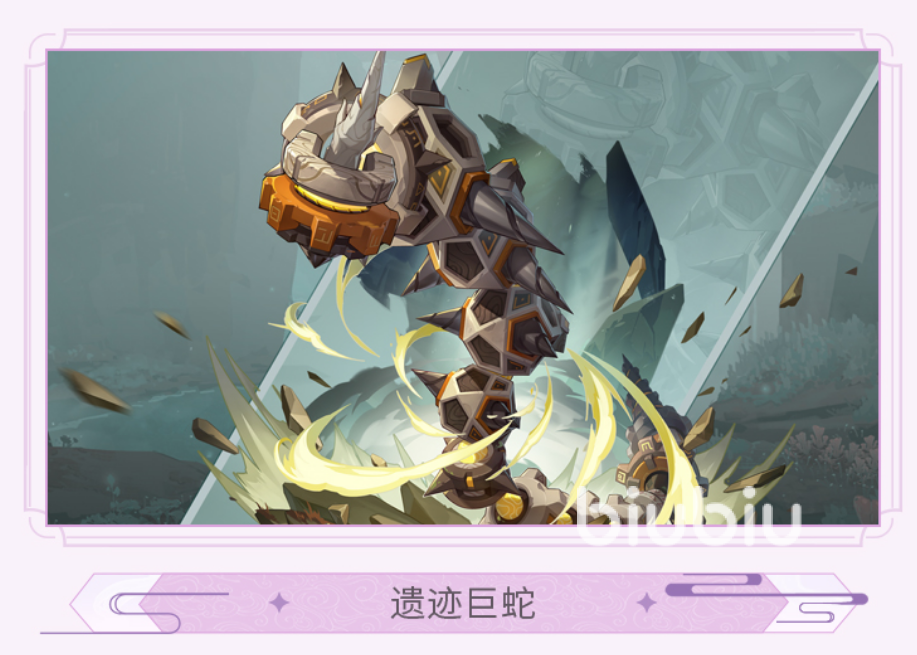 層巖巨淵的新BOSS為“遺跡巨蛇”,是挖掘用的機(jī)械變換出來的怪物,在屬性上是巖元素,屬于物理攻擊型。巖元素目前還是相對獨(dú)立的一種元素,因此玩家用手里最強(qiáng)的隊(duì)伍去打遺跡巨蛇還是可以的。在劇情上,本來遺跡巨蛇是沉睡著的,被玩家吵醒后蘇醒。我們可以猜測一波遺跡巨蛇的技能:蘇醒之前是無敵霸體狀態(tài),蘇醒后從地面鉆出來用頭和尾部攻擊玩家,并且因?yàn)锽OSS的描述有機(jī)械的字樣,這個(gè)BOSS應(yīng)該是會(huì)變身擁有兩種形態(tài)。游戲如果想抬高巖元素角色,則會(huì)讓巖元素在遺跡巨蛇BOSS這里發(fā)揮巨大作用,還是值得期待的。