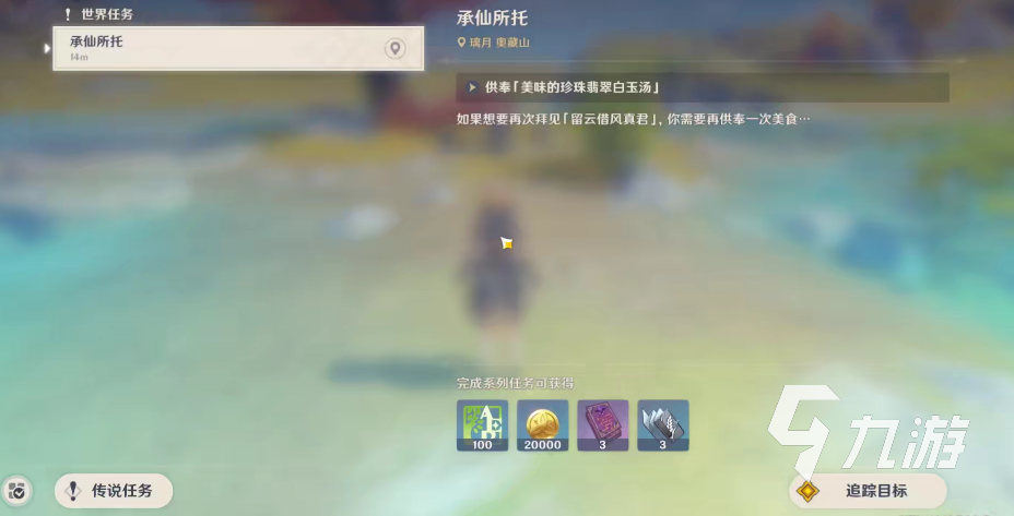 首先在之前任務中,璃月找到四仙之后,這個任務已經(jīng)消失了。等你再到留云借風真君身邊的時候,它會提示你:如果想再次拜見留云借風真君,需要在供奉一次美食。玩家們只需供奉珍珠翡翠白玉堂這種食物,即可觸發(fā)隱藏任務承仙所托了。