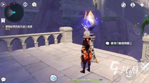 8、使用幽邃鴉眼,調(diào)整位置,坐電梯上高塔,之后前往高塔頂部,合上日記這第一卷《圣國的詠唱》算是完成了。