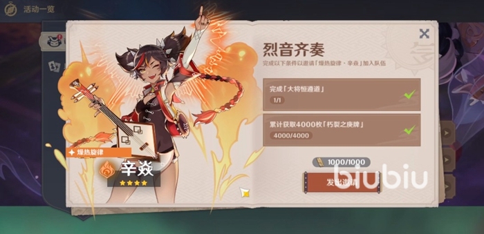 而在完成大將恒遵道任務(wù)并且我們在訣箓陰陽寮玩法中累計獲得4000個朽裂之庚牌之后,我們就可以解鎖烈音齊奏辛焱的條件。點擊邀請之后就可以獲得辛焱這個三星角色了。當(dāng)然了這里也是要告訴大家的是,由于大將恒遵道任務(wù)是包含在謎境懸兵活動中的,所以任務(wù)以及活動會在11月8日失效,還沒有完成的小伙伴趕緊去完成吧!