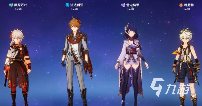 下面這個(gè)配隊(duì)就比較另辟蹊徑了,采用的是楓原萬(wàn)葉+公子+雷電將軍+班尼特的陣容組合。雷電將軍最大的功效就是可以為全隊(duì)提供快速的元素充能,這樣的話其他角色可以切換到前臺(tái)頻繁釋放元素爆發(fā)。而這一套陣容搭配楓原萬(wàn)葉又是可以做到水元素以及雷元素的雙擴(kuò),有效提升輔助的能力。