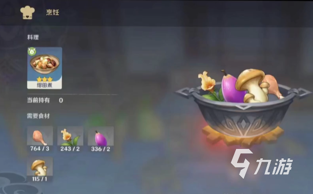 紺田煮是只有玩家在稻妻的聲望達(dá)到1級(jí)后才能獲得食譜,并且這是一道三星級(jí)別的料理,也是稻妻紺田村的村民們的拿手好菜,是一道極具鄉(xiāng)土氣息的料理。食材方面需要3份罃肉,2份金魚(yú)草、2根堇瓜和1個(gè)蘑菇,制作簡(jiǎn)單又具有豐富的營(yíng)養(yǎng)價(jià)值。最重要的是,紺田煮是可以用來(lái)復(fù)活角色的,所以玩家們不妨在打女士時(shí),多備幾分紺田煮吧。