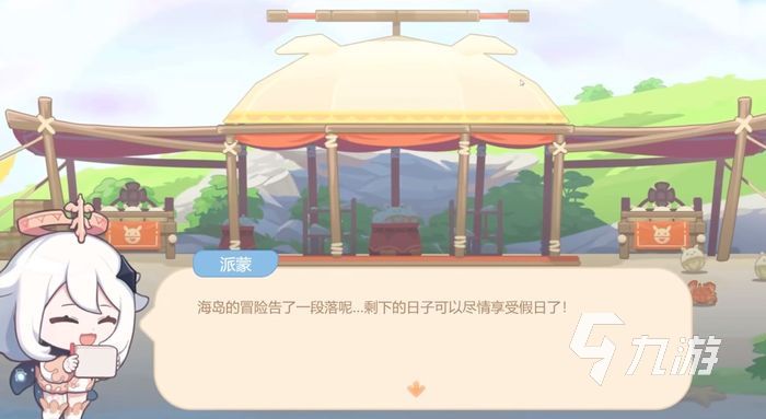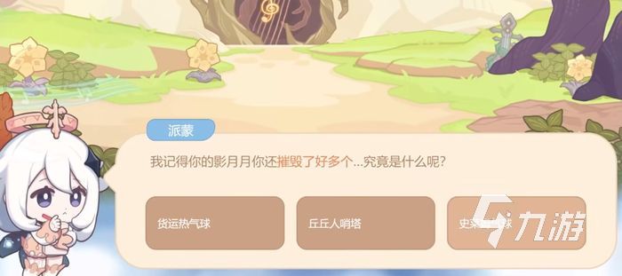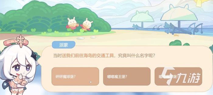 這里再給大家講講第一天和第二天的答案吧,進入第一天后應急食品會問你初來海島,你們第一個到達的島嶼是哪一座?選擇分別為有破船的小島、有機械裝置的小島、有超多嘟嘟可的小島,答案是最后一個,第二個問題是當時將玩家送到金蘋果群島的交通工具名稱叫什么?選擇分別為砰砰魔球堡、嘟嘟魔王堡、嘟嘟魔球堡,答案是第一個,第三個是給出一個背影,讓玩家們猜出東西名稱,選擇分別為風史萊姆、飛行的丘丘人、會飛的箱子,答案是最后一個,完成后會獲得二十原石和三萬摩拉。