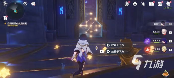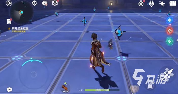 然后大家可以看到地面上有很多的小機關,啟動之后就會按照順序進行鏈接,達成頂部的圖示就算過關了。這里面大家如果記不住的話,可以先截圖保存一下頂部的標記,然后再進行連線。同時也可以跑遠遠的看一下這些裝置的分布圖,然后截圖連線,成功之后按照步驟就可以了。