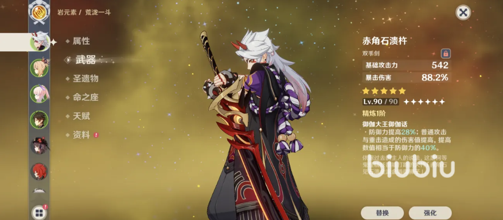而下半的荒瀧一斗就不用說了,突出一個簡單無腦,大劍角色一刀下去大數(shù)字令人神清氣爽,操作簡單吃防御加成,容錯率高,配合五星武器赤角石潰杵的被動防御加成,與普攻傷害加成特效,可以說是非常好用,當(dāng)然這把五星大劍也是六命諾艾爾的畢業(yè)武器,畢竟都是吃防御加成的巖系砍王。但是巖系角色有個弱點就是破盾比較慢,巖系主C一般無法配合其他屬性,所以大都是純巖隊,最多帶個奶媽。巖屬性的唯一特點就是與其它元素結(jié)晶生成護(hù)盾,但是任何破盾的加成,所以在深淵效率上非常慢,但如果你是追求快樂的大世界玩家,還是可以擁有不錯的體驗的,而荒瀧一斗作為稻妻喜劇人,頭腦簡單四肢發(fā)達(dá),心地善良的角色形象也十分討喜。
