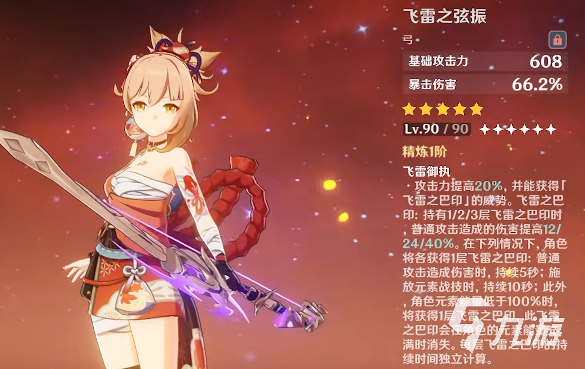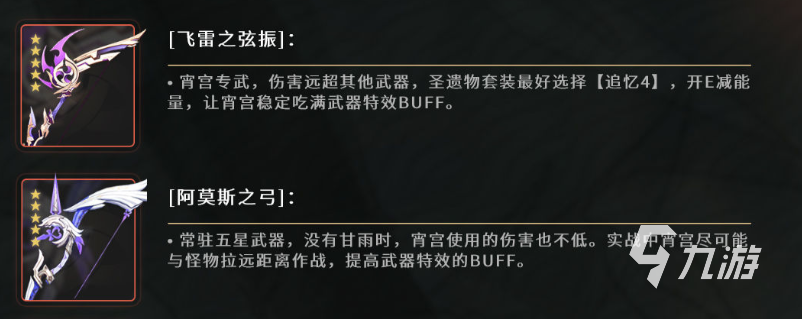 五星武器本就難得,不必硬花大量原石去抽。在四星武器里,弓藏可謂是宵宮的畢業(yè)武器了。如果將其精煉值拉到五,所造成的傷害可與五星專武精煉1水平相媲美。因此非常推薦大家進(jìn)行培養(yǎng)。
