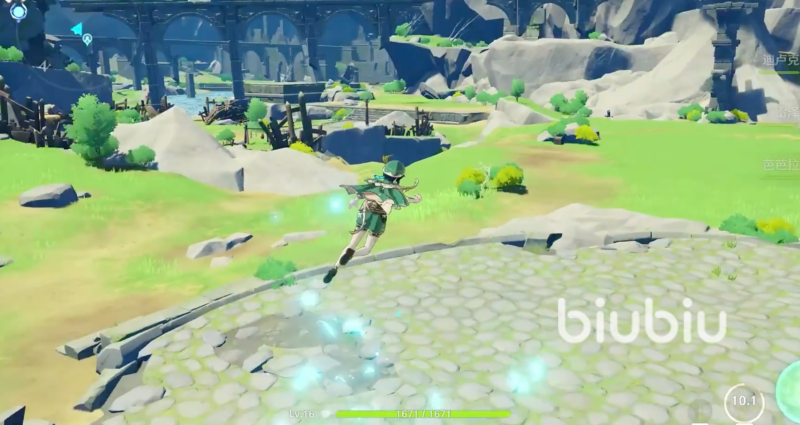 除此之外,溫迪的元素戰(zhàn)技可以趕路,他的元素戰(zhàn)技長按的話,可以飛起來,適合趕路和爬山。尤其是在收集神瞳時可以獲取特殊地形的,非常方便。