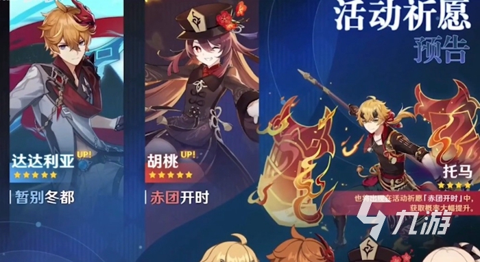 而第二個卡池的時間是在11月2日一直持續(xù)到11月23日,名稱叫做赤團(tuán)開時,除了官方公布的五星角色胡桃up返場之外,2.2版本推出的新四星角色托馬也會確定在第二個卡池中加入。另外,角色方面還會有雷澤以及女仆這兩個四星角色加入,而武器已經(jīng)確定的就是護(hù)摩之杖了,另外一個加入的武器應(yīng)該就會使塵世之鎖了。