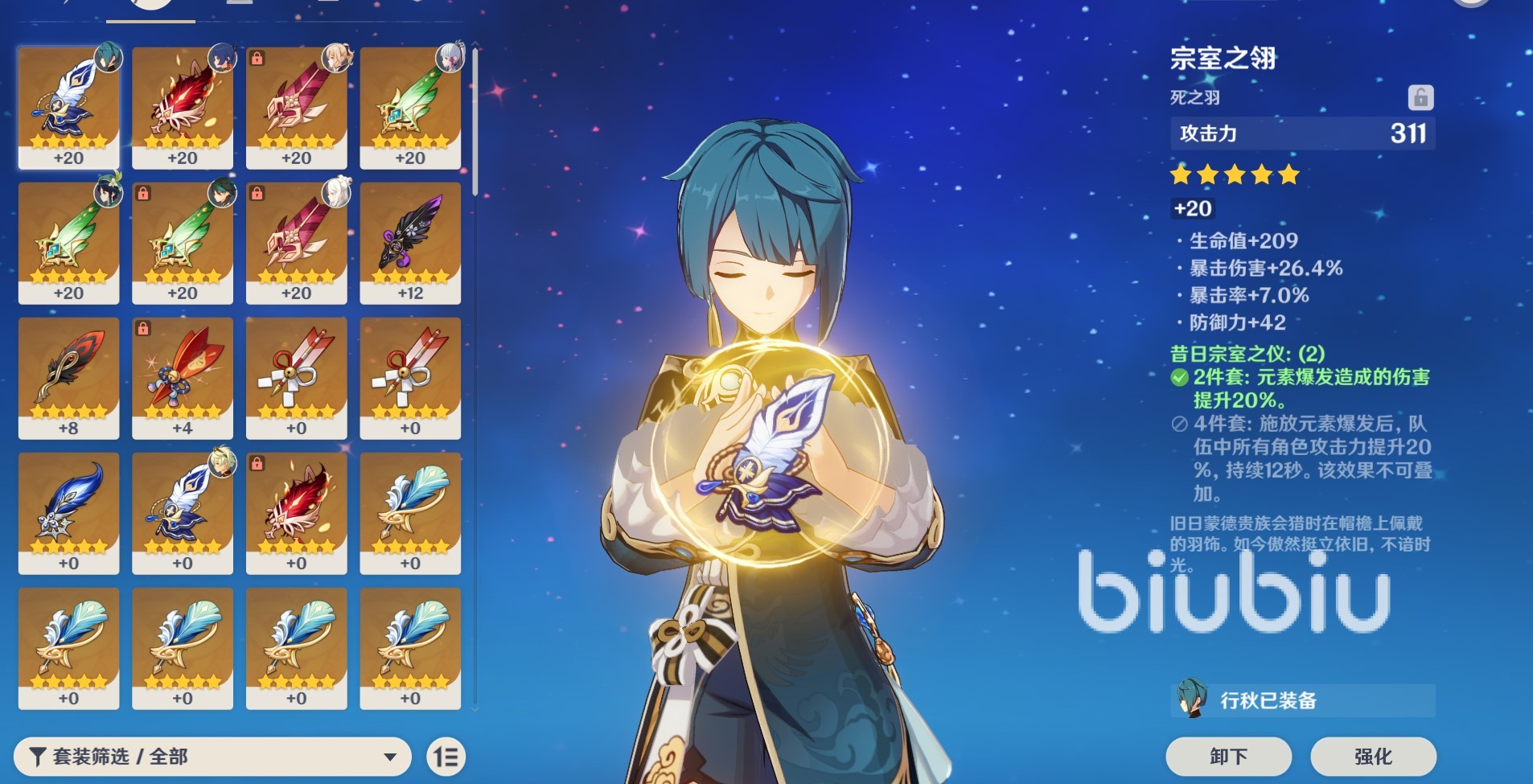 行秋的定位就是副C,圣遺物當(dāng)前版本有3大選擇: