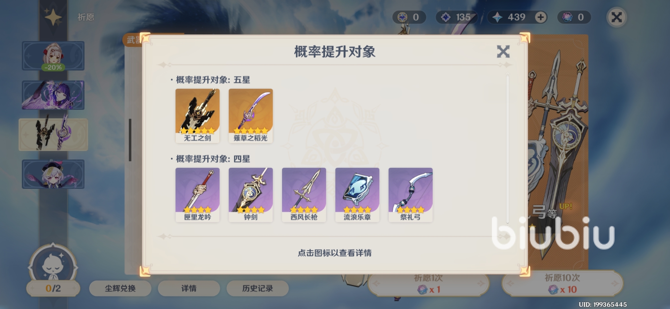 我們以本期武器池為例,兩把五星UP武器分別是薙草之稻光和祭禮弓,因此,玩家只能在這兩把武器中選一個(gè)進(jìn)行定軌,不允許選擇蒼古自由之誓等武器。