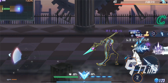 最后就是大招技能了,大招技能有點類似于亂舞技能。使用之后兵器少女會中等速度移動,移動的同時揮舞武器來進行攻擊。這個技能一般會在血量低的時候使用,可以錯位來進行躲避。