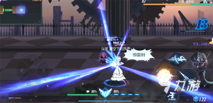 第三種攻擊方式為突進攻擊,兵器少女的突進攻擊帶有霸體,會快速的移動一段距離。如果說在移動的路徑上碰到了敵人,那么就會進行上挑的連招攻擊。連招基本上是三段到五段,傷害能力來說是很強大的,而且角色期間也無法使用任何的技能和道具。