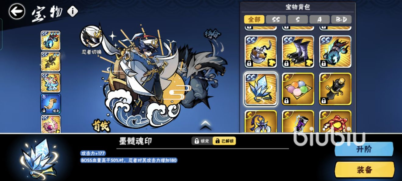 1、寶物效果:BOSS血量高干50%時(shí),忍者對(duì)其攻擊力增加180,這個(gè)是初級(jí)狀態(tài),此寶物可以進(jìn)階升級(jí)。