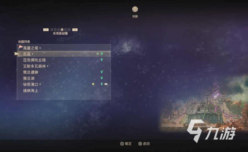 風(fēng)靈之塔。玩家首先前往尼茲,通過(guò)那里的支線任務(wù)之后,然后接下告別魔法師的支線任務(wù),再前往風(fēng)靈之塔。