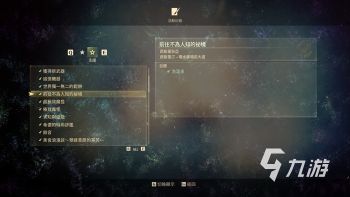 想要接取到溫泉支線(xiàn)任務(wù)的話(huà)我們首先需要擊敗五個(gè)領(lǐng)將并且到達(dá)雷納星球,并且我們需要將西斯羅狄亞區(qū)域的其他支線(xiàn)任務(wù)全部完成,隨后在回到西斯羅狄亞區(qū)域的西斯羅汀城鎮(zhèn)上,就會(huì)在管理員這里觸發(fā)第一個(gè)溫泉支線(xiàn)任務(wù)前往不為人知的秘境了。