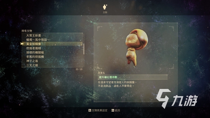 看來(lái)主角一行人對(duì)于溫泉是情有獨(dú)鐘,我們第二個(gè)任務(wù)同樣也是泡溫泉,而且也是有一個(gè)固定的劇情對(duì)話(huà),完全不需要玩家們進(jìn)行任何的操作及戰(zhàn)斗。而在劇情的最后會(huì)提示我們失去獲取稱(chēng)號(hào)超級(jí)大色狼,其實(shí)游戲中根本就沒(méi)有這個(gè)稱(chēng)號(hào),所以大家不用太過(guò)擔(dān)心。劇情結(jié)束后這個(gè)任務(wù)就完成了,我們還可以獲得一個(gè)文物黃金妖精像獎(jiǎng)勵(lì),這個(gè)文物可以提升我們獲取礦石的數(shù)量。