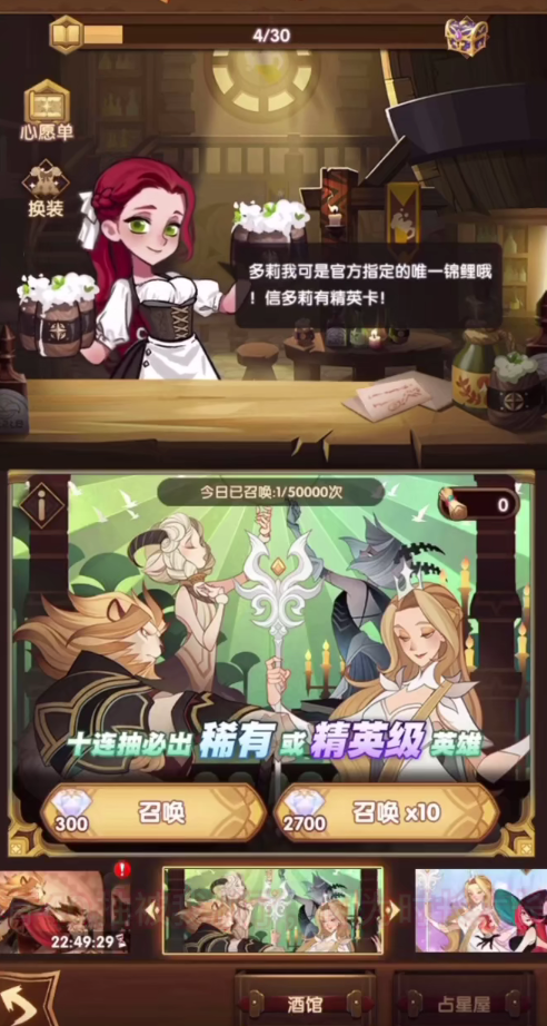 想要快速積攢精英英雄就必須要在商城里進(jìn)行抽獎(jiǎng)活動(dòng),玩家們?cè)谟螒蛑谐楠?jiǎng)必須要用到靈魂石和狗糧卡,這兩個(gè)道具可以消耗掉用來(lái)抽獎(jiǎng)。十連抽一般保底會(huì)出至少一個(gè)紫色卡牌,所以連續(xù)十連抽的收益會(huì)更高。