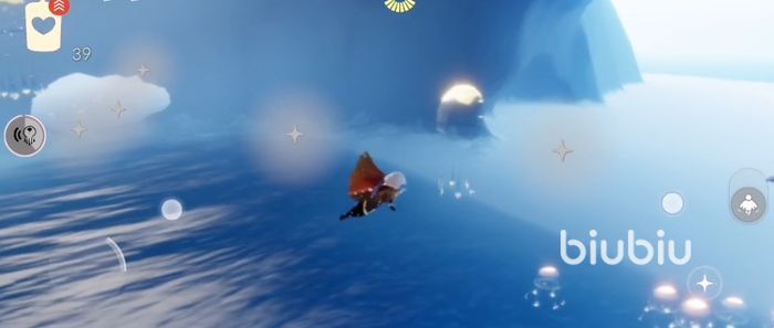 在石臺(tái)的左下角有一個(gè)蠟燭,點(diǎn)燃后飛到石臺(tái)的最下方可以看見(jiàn)還有一個(gè)蠟燭,再次點(diǎn)燃后一直往正前方的小島上飛,小島上還有一個(gè)蠟燭,點(diǎn)燃后直接沖到海面上,在海面中有一個(gè)洞口,進(jìn)入后就可以找到了。
