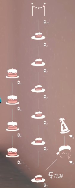 首先是周年慶特別兌換物品,這個(gè)無(wú)需找到先祖也可以兌換,左側(cè)是四個(gè)大型周年慶蛋糕,每個(gè)的價(jià)格為四根蠟燭,中間為六個(gè)小蛋糕,每個(gè)兌換需要兩根蠟燭。