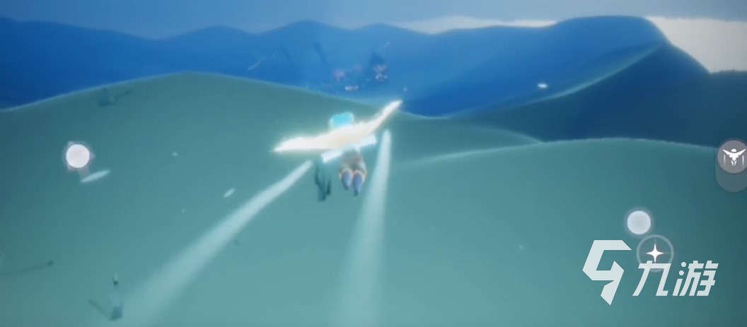 在碼頭的旁邊停靠著一艘船,這個(gè)船還冒著白色的亮光,接著駕駛這艘小船向前行駛,等過(guò)來(lái)一會(huì)兒這個(gè)船會(huì)自己停住,停住之后會(huì)出現(xiàn)很多小光精靈,不要管這些光精靈,直接跳下船繼續(xù)往云端的位置前行,此時(shí)會(huì)有一個(gè)類(lèi)似石拱橋的山谷出現(xiàn)。