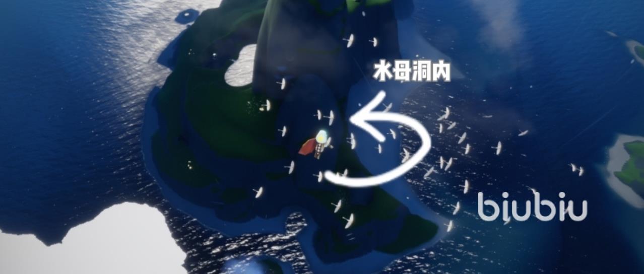 如此就來到了圣島圖,向中間的主島飛過去,飛到其背面,停下來,就能看到一個洞口,進去以后許多水母漂浮在里面,而小伙伴們要找的先祖也在里面哦。