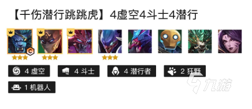 對于以上陣容來說,陣容羈絆就是四虛空,四斗士以及四潛行者,兩狂野以及一機器人等等。