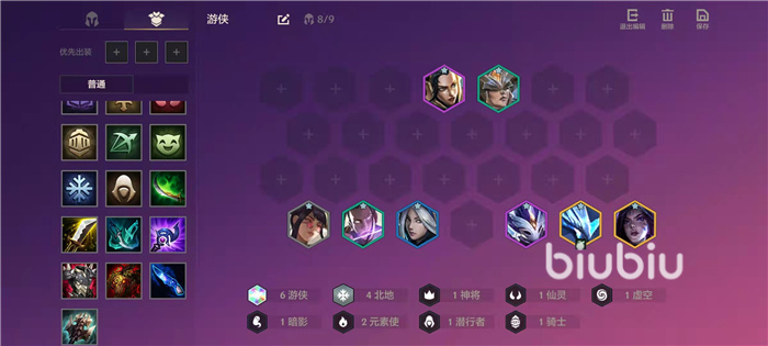 在游戲里面只有5位游俠英雄,所以玩六游俠的陣容必須準(zhǔn)備游俠的轉(zhuǎn)職徽章,它的合成公式是金鏟鏟+負(fù)極斗篷,玩家可以在開局選秀拿裝備的時候,提前拿下帶有負(fù)極斗篷的英雄,后面刷一個金鏟鏟出來就能夠組六游俠的陣容了。