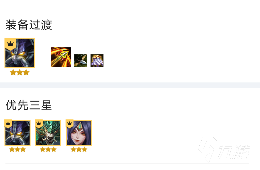 羈絆組成為:4狂野,4斗士,2虛空,再搭配一個機(jī)器人。英雄組成分別是卡薩丁,沃里克,狐貍,大蟲子,猴子,納爾,雖然只有七人口,但是陣容的強(qiáng)度是非常高的,狂野傷害加斗士的攻擊回血,容錯率極高。搶裝備的順序為反曲之弓,負(fù)極斗篷。盡量優(yōu)先把盧安娜的颶風(fēng)給卡薩丁合出來,這是拉薩丁最為核心的裝備,一般是給兩個颶風(fēng),或者拿紅buff。沃里克的裝備建議是鋼鐵烈陽之匣,有其他肉裝也可以看情況給沃里克,他是最主要的前排。另外一個輸出核心就是狐貍,狐貍的裝備給法爆和藍(lán)buff比較舒服,如果有條件可以再給一個復(fù)活甲提高容錯。