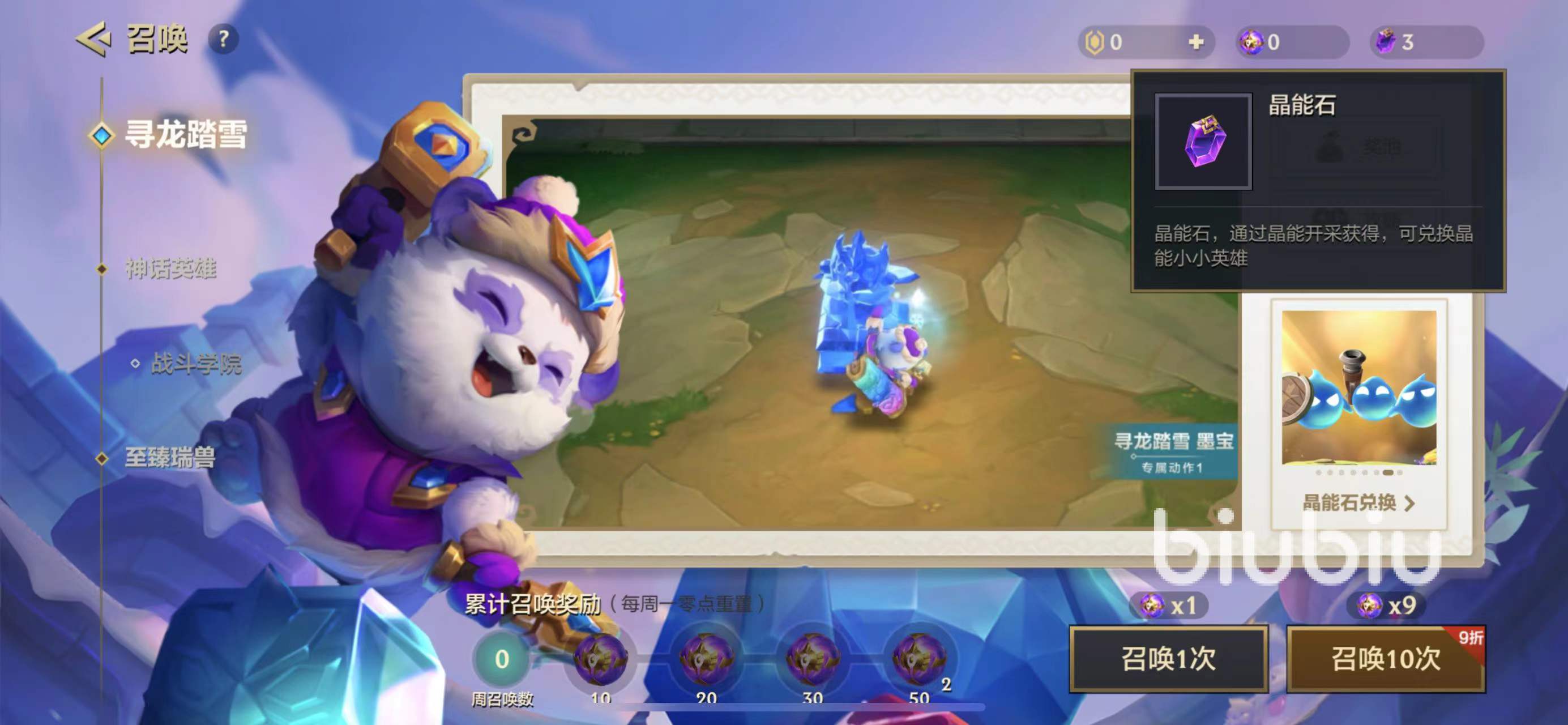 只有通過晶石能量才可以進(jìn)行召喚,想要獲得晶石能量的話,就得去購買。然后可以打開商城,找到道具那一欄選項(xiàng)。再找到晶能寶箱,購買之后就可以獲得一個(gè)晶石能量以及兩張極地氣泡體驗(yàn)卡。最好一次性購買九個(gè)之后,之后就能夠一次性召喚十次。