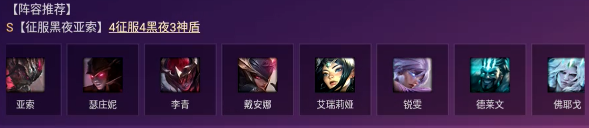 早期過(guò)渡:前期沒(méi)有亞索可以先用克烈配重騎打工,或者哨兵配神盾裝備給拉夫打工,有偶黑夜倆征服加一張亞索就可以直接換。