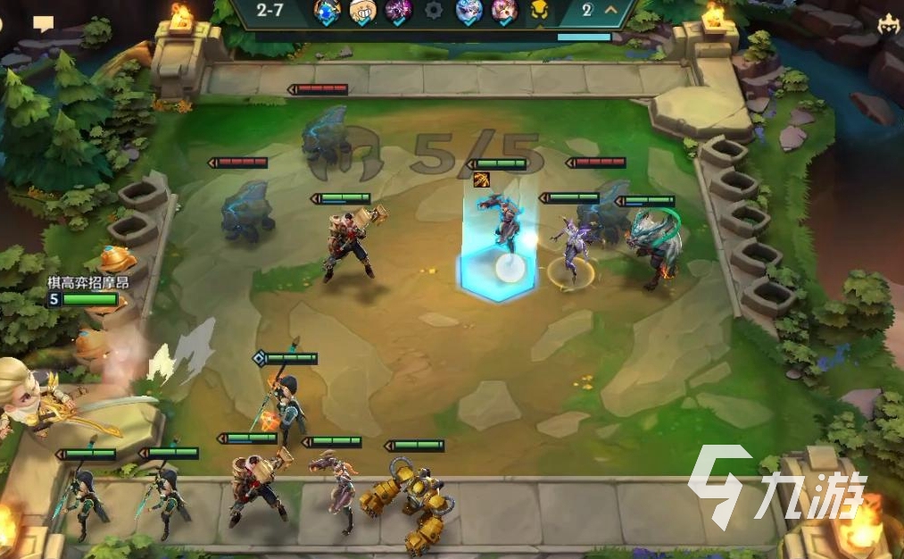 在開局之后,玩家首先使用強(qiáng)勢棋子和羈絆打工,讓打工棋子提升至兩星,擁有不錯的血量。玩家首先拿下反曲弓、無用大棒,讓第二輪組建成四人、五人陣容,構(gòu)建成三發(fā)明、兩精密、兩極客。