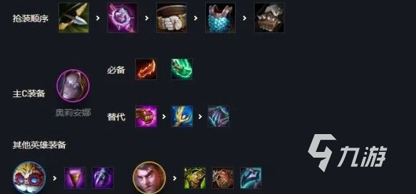 在裝備搭配上,奧莉安娜作為核心英雄,屬于主C,適合搭配珠光護(hù)手、塑極之矛、狂暴之刃等裝備。杰斯作為副輸出,一定要搭配狂徒鎧甲、龍爪、石像鬼等。