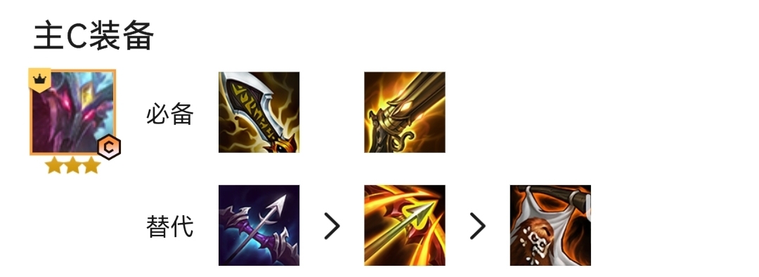 我們這套陣容是非常需要夢魘這張卡的質(zhì)量以及裝備的,所以小伙伴們在搶裝備的時候也要優(yōu)先考慮夢魘的裝備問題,我們選擇拳套,金鏟鏟,攻速,大劍這樣的裝備選擇順序。在搶到這些裝備之后,小伙伴就可以給夢魘合成裝備了,這里小編推薦小伙伴可以給到夢魘無盡之刃,火炮,之后的裝備是可以選擇破甲弓,分裂,基克的聚合都是可以的。