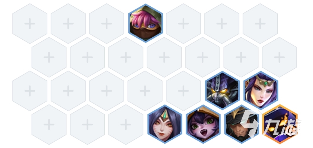 凱南放在陣容的中心位置,其余英雄只需要沉底放置就好了,這樣小法師可以得到非常不錯的保護效果。這個陣容,前期是可以用卡薩丁,卡牌和狐貍組成三法師來過渡的,后面只要等級上來D牌就好了。