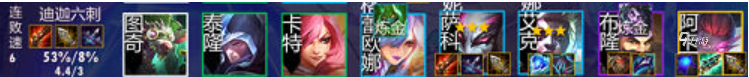 1.棋子組成:老鼠、男刀、卡特琳娜、蕾歐娜、薩科、艾克、布隆、阿卡麗。